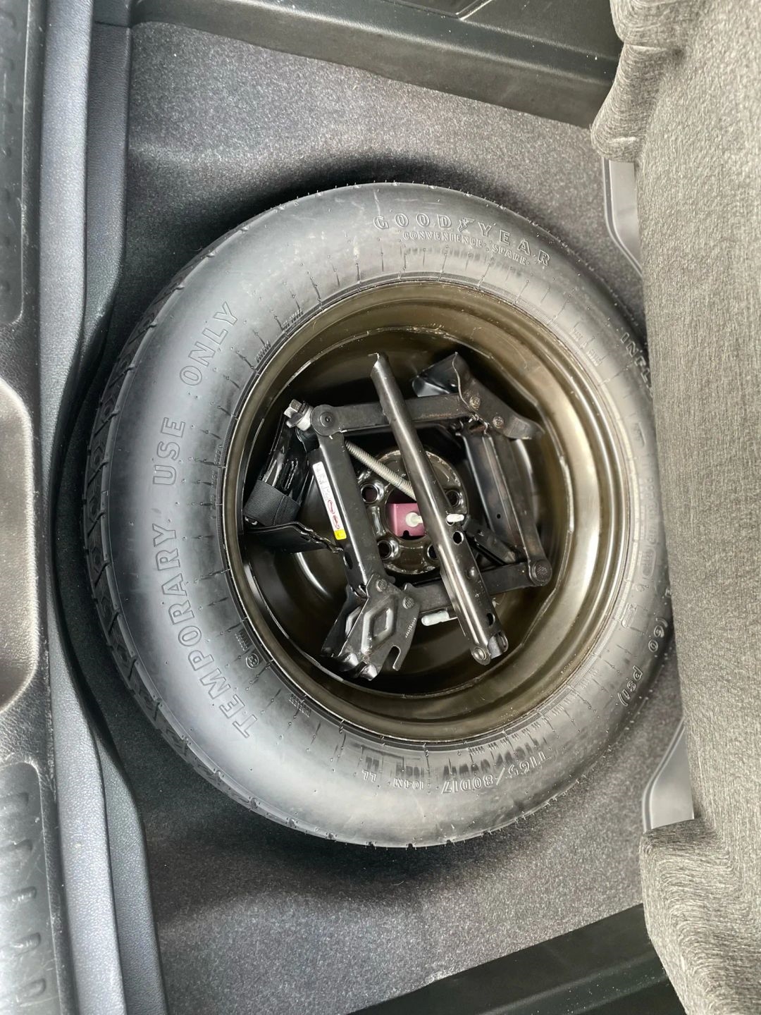• Compact Spare Tire Mounted Inside Under Cargo
